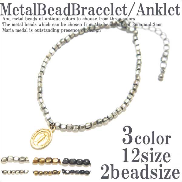 【ポスト投函送料無料】ブレスレット メンズ レディース マリアメダイマイクロメタルビーズブレスレット/アンクレット アンティークカラー選べるビーズ 選べるサイズ 即納 newyear_d19