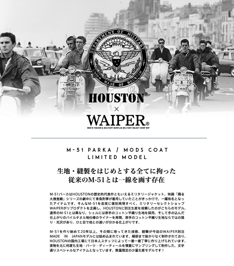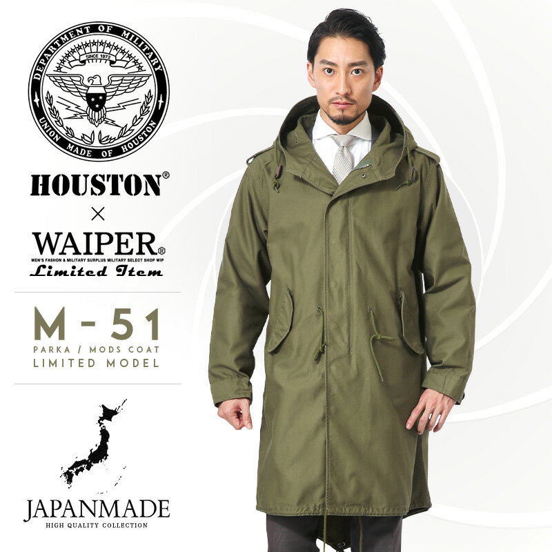 【ラッキーシール対応】 ■商品説明 HOUSTONの代名詞"M-51パーカ モッズコート"をWAIPER別注で、生地・縫製を始めとするすべてに拘ったMADE IN JAPANモデルが入荷しました。