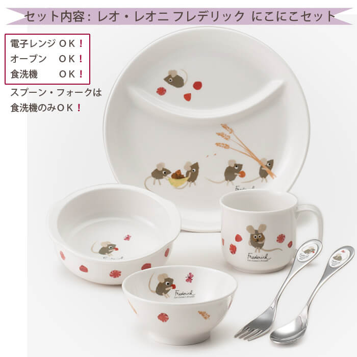 ニッコー食器レオ・レオニ フレデリック にこにこセットお食い初め用食器としても人気のお品です電子レンジ・オーブン・食器洗浄機で使えて便利♪